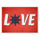 Liefde nautische vormgeving met zeilwieldecoratie op rode achtergrond