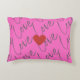 Dit accentkussen heeft een levendige roze achtergrond versierd met het woord 'liefde' herhaaldelijk geschreven in een stijlvol, cursief script. De tekst is weergegeven in een donker, elegant lettertype dat prachtig contrasteert met de heldere achtergrond. In het midden van het ontwerp voegt een gedurfd rood hart een opvallend brandpunt toe, dat affectie en warmte symboliseert. Dit kussen is ideaal voor het toevoegen van een vleugje romance en charme aan elke leefruimte.