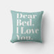 Lieve Bed, ik hou van je Blauwgroen Aqua Kussen