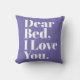 Lieve Bed, ik hou van je Paars en wit Kussen
