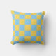 A vibrant light blue and yellow checkerboard pillow with a bold geometric style. Perfect for modern decor.