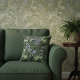 Een Sierkussen met een afbeelding dat is verbeterd en opnieuw gekleurd en nieuw leven inblaast in het klassieke Seaweed-ontwerp uit 1901 van John Henry Dearle. Het patroon was geïnspireerd op art-nouveauesthetiek. Het wervelende groen creëer heeft een gevoel van beweging en vitaliteit, terwijl de lila bloemen een delicate en rustgevende toets toevoegen aan het algehele ontwerp.