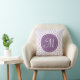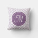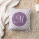 Een wit patroon op een lila kussen met uw initiaal.