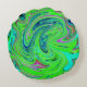 Lime Green en Blue Groovy Abstract Retro Art Rond Kussen
