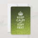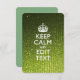 Uw feestelijke, gepersonaliseerde Keep Calm-gezegde op een mooi, stijlvol kalkgroen decor. Een grappige of grillige poging om uw creatieve woorden op twee bewerkbare tekstregels te zetten. Vergeet niet om de KAPITAALletters voor de beste resultaten te gebruiken. De borduurlijke design zijn beschikbaar in een brede selectie van populaire kleurenopties. Gebruik de link "Vraag deze ontwerper" om contact met ons op te nemen met uw speciale ontwerpverzoeken of voor hulp bij uw aanpassingsbehoeften.