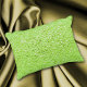 Hier is een kussen die zowel aantrekkelijk als interessant is. Het glanzend patroon lijkt op glasstukken die in een heldere kalkgroene kleur zijn aangebracht. Uniek en funky! **Let op: het afbeelding is op het weefsel gedrukt en bevat geen ander echt glas of stof dan stof.**