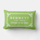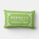 Het stijlvolle lumbale kussen is voorzien van een wit Grieks, geometrisch grensontwerp en een monogram dat gepersonaliseerd kan worden met een getrouwde of familienaam, een datum die is vastgesteld voor het jaar dat het lijst is gehuwd of het jaar dat het eerste kind is geboren. Pas de kalkgroene achtergrond aan om met uw openluchtdecor te coördineren.