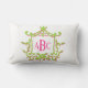 Vernieuw je kamer! Chique trendy kleurrijke lime groen en roze pagode trellis en floral lijst monogram initialen kussen. Klik op Personalize It om je monogrammen toe te voegen (First, Last, Middle in die volgorde) en creëer je eigen unieke een van een soort lumbale kussen ontwerp! Onderdeel van de Decorate Your Bedroom | Ikat-Collectie. © Marisu Valencia™.