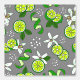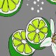 Stijlvolle fruitige schil- en plakbehang met een kleurrijk patroon van groene citrusschijfjes en  witte limoen op een leigrijze achtergrond. Het is perfect voor het maken van een muur in uw keuken of bar