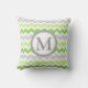 Elegant en modern helder kalkgroen, grijs en wit chevron zigzags strepen het aangepaste monogram decoratieve werpkussens. Volledig aanpasbaar, voeg uw eigen initiaal voor een echt uniek punt van het huisdecor toe.