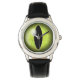 Cat Eye - CAEY100 © Sunny Mars Design. Trendy stijlvolle cool custom geprint opvallend geel en lime groen cat eye ball polshorloge met een close up van de iris van een kattenoog. Perfect cadeau voor kattenliefhebbers en andere katachtige vrienden. Het horloge is volledig aanpasbaar. Creëer Uw eigen unieke horloge door verschillende kleuren te kiezen, polsbanden en stijlen zijn onder meer: Classic RVS, zwart lederen band, goud en zilver tweekleurig, wit of roze sportief, zwart of wit emaille strass, roze rood of zilver glitter en verschillende kleuren kinderen horloges. Maakt een geweldig cadeau voor elk man, vrouw of kind.