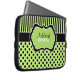 Deze gepersonaliseerde kalkgroene, zwarte en witte polka punten en strepen laptophoes bevat tekstvakken waarmee u uw eigen naam, initialen, bedrijfsnaam of andere tekst kunt aanpassen. Als u hulp nodig hebt bij het aanpassen, kunt u een e-mail sturen naar niteowlstudio@gmail.com.