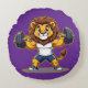 Lion Lifting Light Weights – Cute Gym Animal Illus Rond Kussen