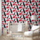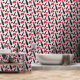 Dit ontwerp kenmerkt lippen en lippenstift op een grijs polka gestippeld patroon.