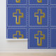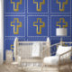 Lit Golden Cross Christelijk Iris Blue Squares Behang