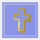 The artwork features a lit, golden Christian cross in a minimalist framed design on a lavender blue background. The background color is customizable should you wish to edit it to better match your preferred color palette. For special requests or questions, contact the artist at wafadahdalcreates@gmail.com. © Wafa Y. Dahdal - All Rights Reserved. WD Art