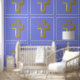 Lit Golden Cross Christian Pattern, Lavender Blue Behang
