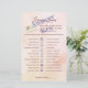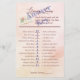 Dit blad is het antwoord sleutel voor de Literary Lovers Vrijgezellenfeest Game. Gasten moeten de namen van het paar overeenkomen met het boek waar ze vandaan komen. Het blush roze en perzikkleurige kunstwerk bevat een schattige waterverf van een verlovingen ring gebalanceerd in de pagina's van een open boek dat een hartvormige schaduw vormt met een roze roos in de buurt. Ideaal voor een vrijgezellenfeest met een boekthema!