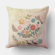 Little Bird Leaves Flowers Roze Sierkussen