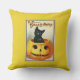 Een geweldig Halloween afbeelding met een kleine zwarte kat in een jack o' lantaarn. Voorzichtig hersteld en een gestileerd lijst gegeven. Wat een geweldige kussen voor je Halloween festiviteiten.