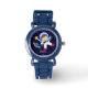 Dit leuke horloge kenmerkt een zoete vectorillustratie van een jongen astronaut, een gele ster, en een blauwe planeet op een donkerblauwe achtergrond en kan gepersonaliseerd worden met de naam van je kind, het monogram, het initiaal, of een tekst van je keuze voor een perfect aangepast cadeau.