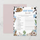 Designed to perfectly match the invitation and coordinating party décor, this game features soft blue watercolor cowboy elements with rustic western charm.