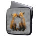 Twee schattige baby vossen die een zoete kus delen. Zachte oranje kleur op een zwarte en witte achtergrond.