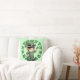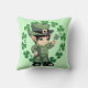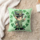 Dit schattige Sint Patrick's Day-ontwerp is voorzien van een kleine, groen geklede prechaun met een achtergrond van shamrocken in een cirkel.