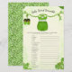 De handgetekende illustratie is voorzien van een schattige groene baby-outfit met een shamrock-ontwerp, hangend aan een wijnstok van levendige shamrocks. Speelse Leprechaun-schoenen en een bijpassend pet bungelen van de wijnstok, waardoor een vleugje eigenzinnigheid wordt toegevoegd. Weelderige met shamrock gevulde hoeken en een subtiele, elegante achtergrond maken dit prachtige ontwerp compleet.