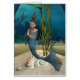 3D digitale weergave van een kleine schattige baby zeemeermin op blauwe fantasieachtergrond