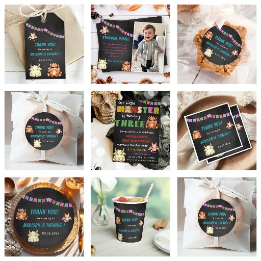 Little Monster Theme 3rd Birthday Party Foto Kaart