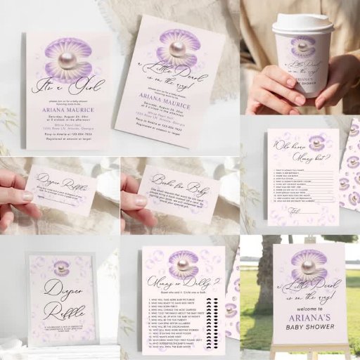 Kleine Parel Paarse Shell Ocean Baby shower Poster. Overeenkomende objecten beschikbaar.
