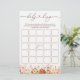 De Little Pumpkin Herfst Floral Baby shower Bingo Game belichaamt de essentie van rustieke elegantie en herfstcharme, en nodigt geliefden uit om de komende komst van een dierbare kleine te vieren te midden van de schoonheid van het herfst-seizoen. Met zijn grillige afbeelding van rustieke wilde bloemen en een charmante pompoen, die warmte en overvloed symboliseert, zet het item het podium voor een bijeenkomst gevuld met liefde, gelach en gekoesterde herinneringen. Aanvullend op de rustieke esthetiek is de elegante moderne kalligrafie, die een verfijnde touch aan de items toevoegt, wat een gevoel van verfijning en stijl oproept. Met zijn mix van rustieke charme en moderne elegantie, belooft dit item een baby shower dat net zo betoverend als memorabel is, waar familie en vrienden samenkomen om de aanstaande ouders te douchen met liefde en zegeningen terwijl ze aan dit nieuwe hoofdstuk van hun leven beginnen. Overeenkomende objecten zijn beschikbaar.
