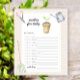 "Een beetje spruit is onderweg." Vier het met dit spruit thema baby shower feest! Waterverf spruit in een pot, een hark, een gieter en snoeischaar (schaar).