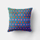 Vernieuw je kamer! De kussen van de draad hebben een geomisch vierkant patroon in roze en oranje tegen een textureerde blauwe achtergrond. Klik op 'Aanpassen' om je monogram of naam toe te voegen en je eigen unieke design te creëer.