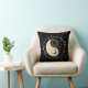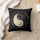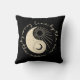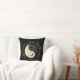 Zwart en gouden hemelbedekking zon- en maanontwerp dat leest - Leef door de zon liefde voor de maan in een handgeschreven scriptlettertype. Het ontwerp wordt herhaald aan beide zijden van kussen.