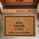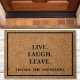 Welkom gasten met een glimlach voordat ze zelfs binnen stappen! De deurmat "Live, Laugh, Leave" heeft een speelse twist op een klassieke begroeting, perfect voor iedereen die geniet van een goede lach. Deze deurmat is aanpasbaar, zodat u een persoonlijke touch kunt toevoegen die het uniek voor u maakt. Omlijst met een strakke zwarte rand, het is ontworpen om de elementen te weerstaan, terwijl u een vleugje humor toevoegt aan uw ingang. Ideaal voor persoonlijk gebruik of als een humoristisch geschenk, deze deurmat zorgt ervoor dat uw huis op de meest heerlijke manier opvalt.