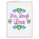 Dit kleurrijke ontwerp met harten en de woorden - Live Laugh Love, is een geweldige manier om ons eraan te herinneren gelukkig te zijn, liefdevol te zijn en te lachen om het leven. Een mooie inspiratie voor iedereen.