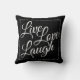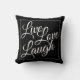 Live Liefde Lach Elegant Wit Script op Zwart Kussen