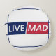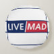 LIVE MAD – Bold Motivational Round Pillow (White) Rond Kussen
