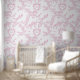 Mooie moderne roze Chinoiserie Toile de Jouy Birds Floral Garden Wallpaper die kan worden aangepast met uw initialen, logo etc