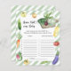 "Lokaal geteelde baby is onderweg". Vier het met dit waterverf groente thema baby shower feest! Waterverf komkommer, ui, aubergine, courgette, geel en rood, radijs, wortelen, hete peper, paprika, erwten en kool, broccoli en bieten op een snijplank. Waterverf biologische oogst.