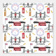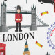 Londen, Engeland patroon met Engelse elementen zoals telefooncel, dubbeldekker bus, London Bridge, het London Ferris Wheel en meer. Composietontwerp van Holiday Hearts Design (rechten voorbehouden).