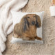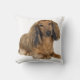 Long Haire dog, de geliefde Dachshund, is geplaatst op een verscheidenheid aan kussens en het ideale geschenk voor fans van het Dachshund-hondenras.
