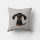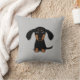 Een schattige zwarte en beige Dachshund-puppy die opkijkt. De kussen van deze schattige Doxie-liefhebber zijn verkrijgbaar in aangepaste kleurenkeuzen en voegen een leuk decoratief accent toe aan je bank of bed. Maakt een doordacht geschenk voor iemand die van Wiener Dogs houdt. Bezoek de Doodle World van Jenn voor meer huisdecor van het hondenliefhebber met deze weenie cartoon en nog veel meer originele hondenrassen tekeningen.