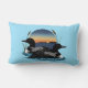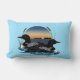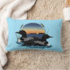 Twee leeuwen op het meer met een zonsondergang en staart in achter hen in een achtergrond van blauw