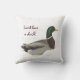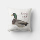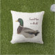 Personaliseer of verwijder eenvoudig de tekst op dit buitenkussen met een wilde eend, zeer verrast om vanaf een vroeg storm omringd te worden door donzige witte sneeuw. Zijn mooie groene iriserende nek, gele snavel en ingewikkeld pattereerde vleugels vallen echt op tegen al dat wit! De tekst luidt: Heer, houd van een eend!
