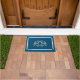 Deze doormat is voorzien van een kunstdecostijl rand en een mooie lotusbloem... in zilver op een donkerblauwe achtergrond.
