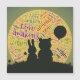 Grafisch van een mooi beer en konijn als silhouet bij een zonsondergang met mooie woorden...