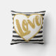 Love Black & White Gold Glitter Stripes Kussen
